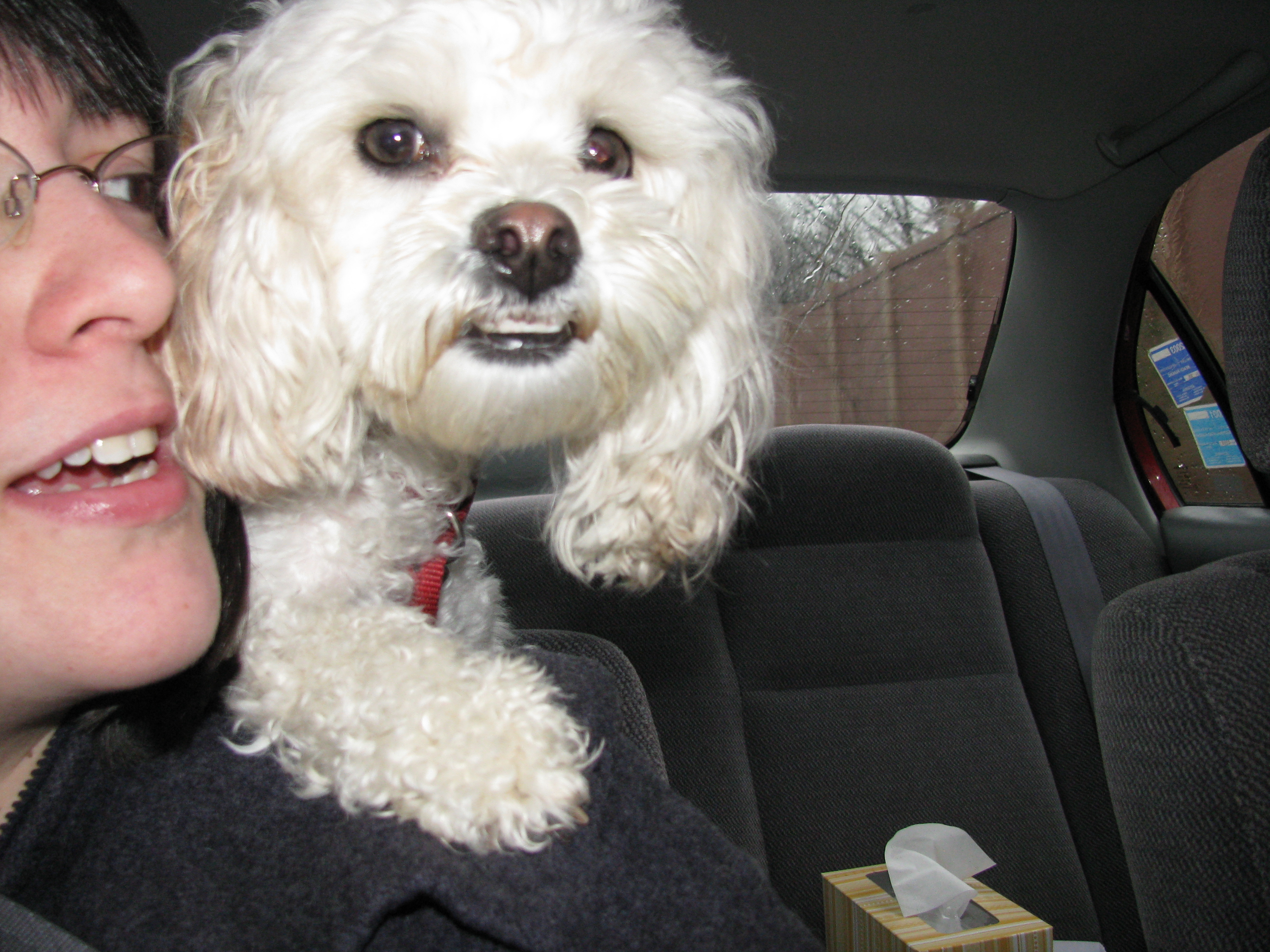 We took Cricket on vacation to Lake George one weekend, a few years ago. She slithered out of her car harness within the first thirty seconds of the trip, and then stood with her front feet on the seat divider and barked at everything she saw out the window for the six hour drive north.