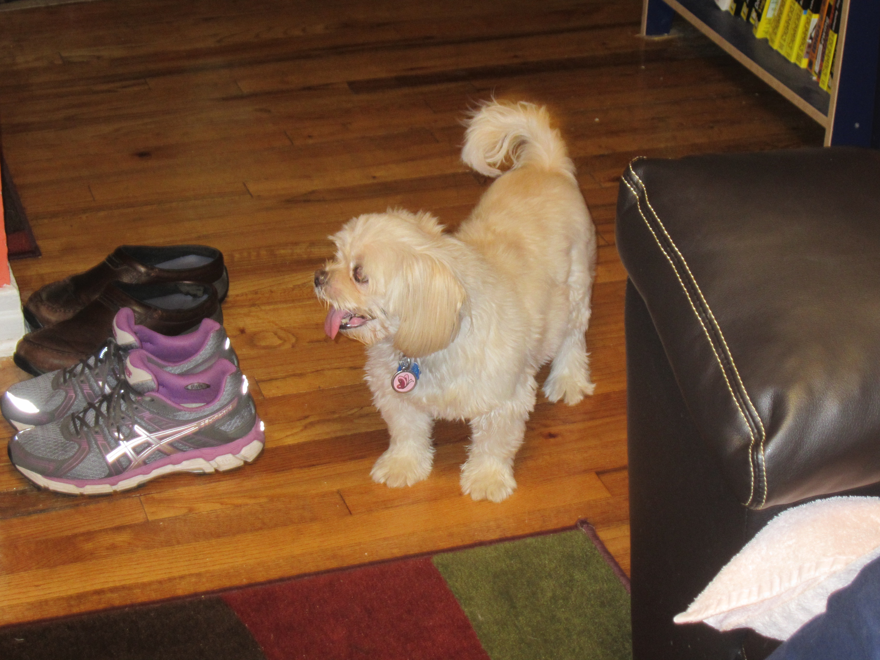 Mom went home to walk the girls and to bring me some things, and by the time she came back I was much more coherent. She brought me a picture of Butterfly with a sock in her mouth, because Butterfly had run into my room, picked up one of my dirty socks from its home next to the laundry basket and then ran to the front door with it. Because she missed me.