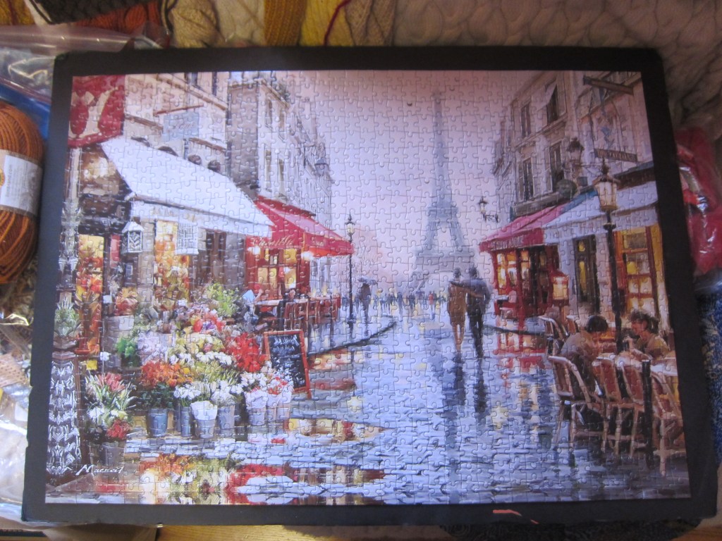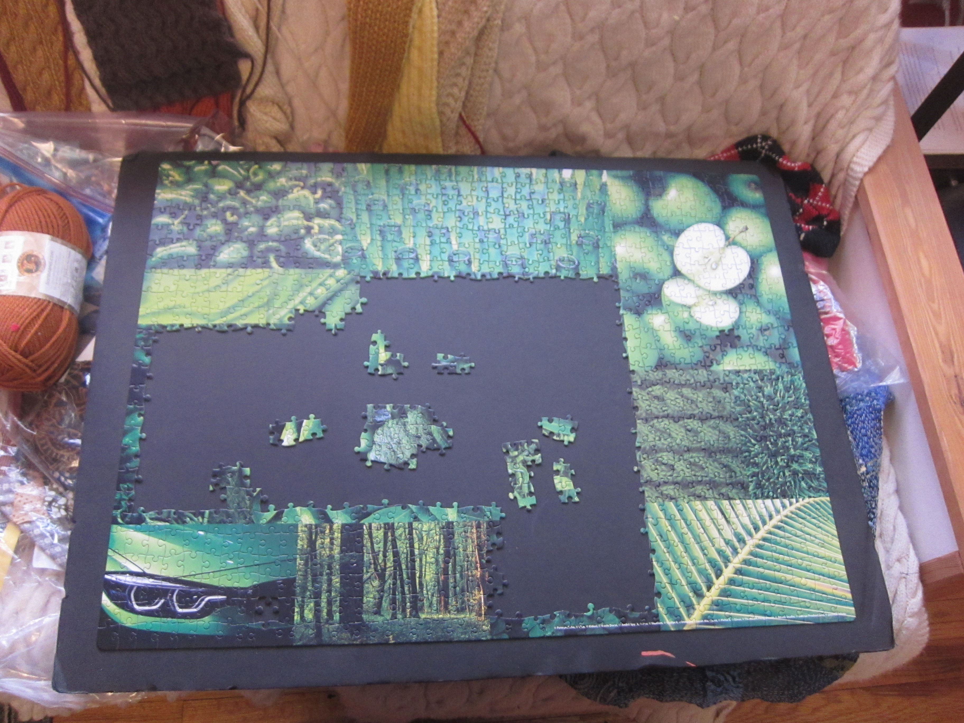 I used to have piles of jigsaw puzzles in the old apartment, because they helped untie the knots that kept me locked in place. I was so thrilled when I was able to give those puzzles away, because I’d found other things that helped even more: like knitting and baking and cooking, and eventually going back to school. But lately, I’ve needed my jigsaw puzzles again. They don’t require a lot of physical effort, and they don’t inspire too much self-criticism; they just activate the analytical and visual parts of my brain and help me slow down my thoughts to a more reasonable pace, so that I can try to deal with them one by one.