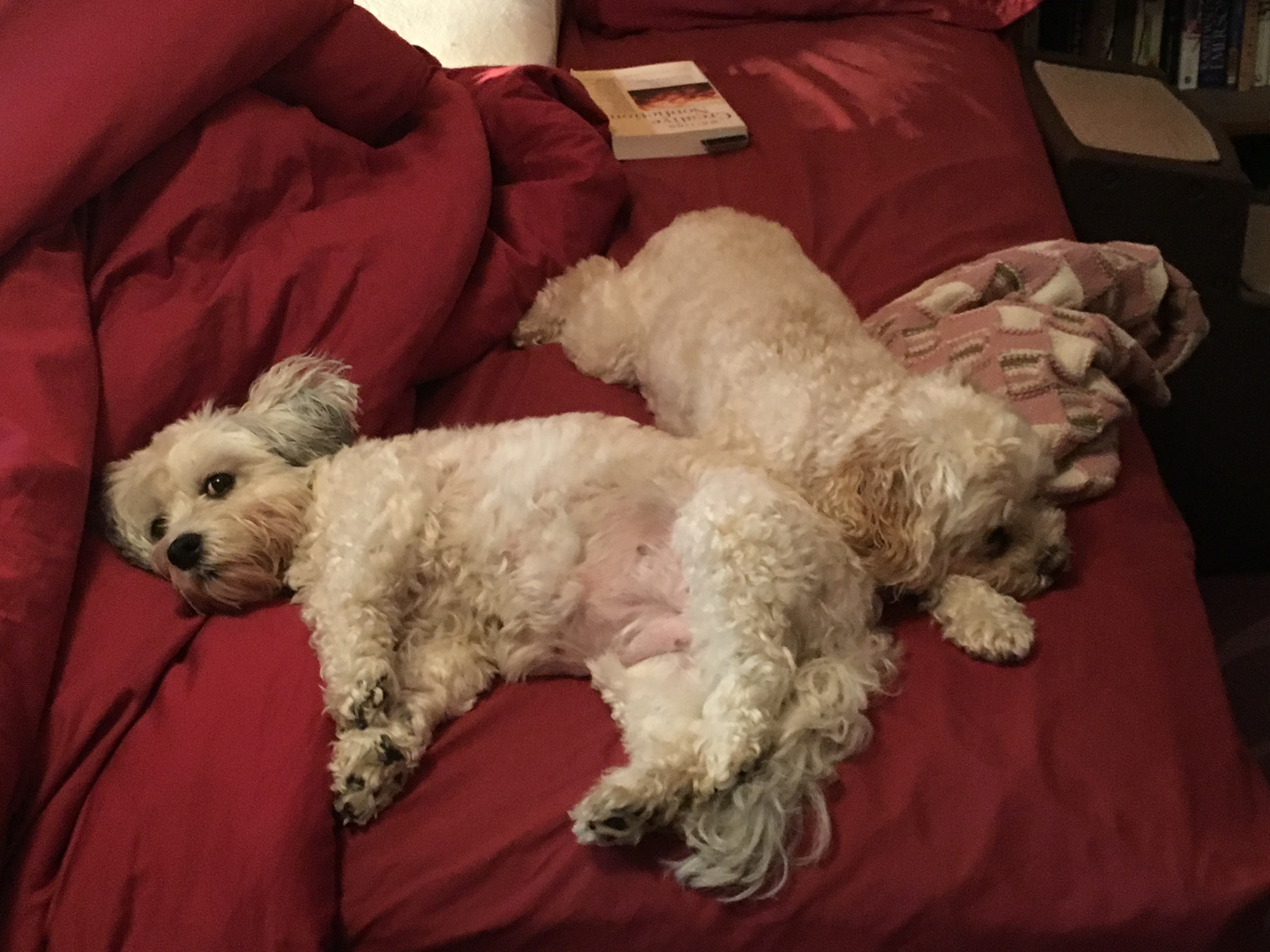 The pain was so much worse than I’d been expecting, so I had to give in and take some of the oxycodone I’d been prescribed, but mostly I survived on ibuprofen and ice and the coziness of my puppy pile.
