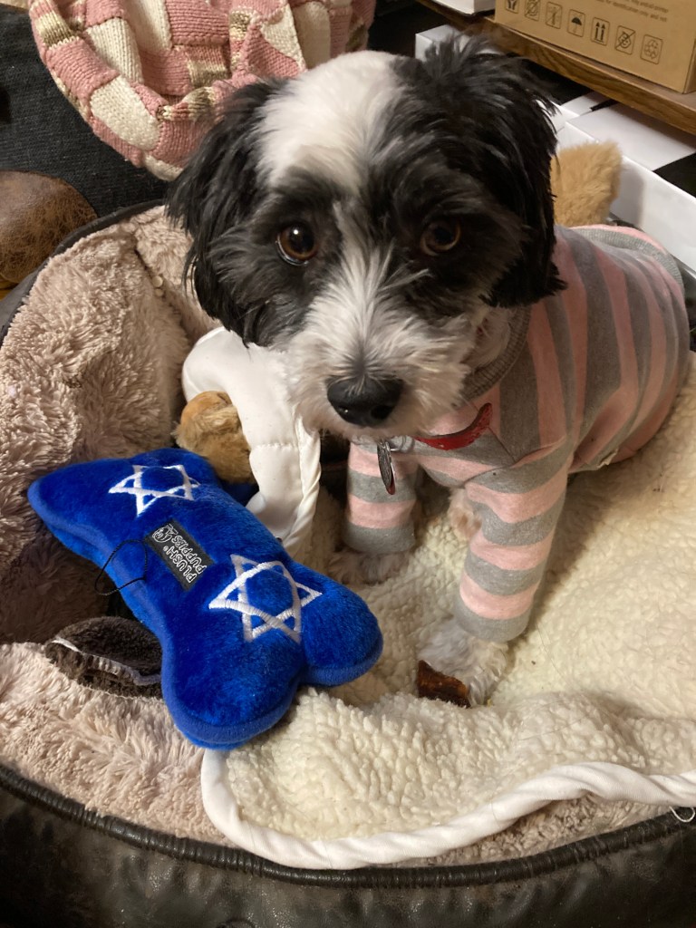 We sat at home for two hours waiting for the phone call, trying to distract ourselves, worried they’d find a reason to deny the adoption. In the meantime, I started thinking about names. I had promised myself I would give our next dog a Hebrew name, and my first thought was Tikvah, which means “hope.” But I was worried that calling her “hope” would put too much weight on her tiny shoulders, so I started researching Hebrew girl names: Aviva (spring), Ilana (young tree), Tzipporah (bird), Shir (song or poem), Yaffa (beautiful), Yofi (beauty), Dvash (honey), Rina (singing and joy), Osher (happiness), Adina (gentle), Dafna, Dahlia, Tiferet, Hadassah, and on and on.