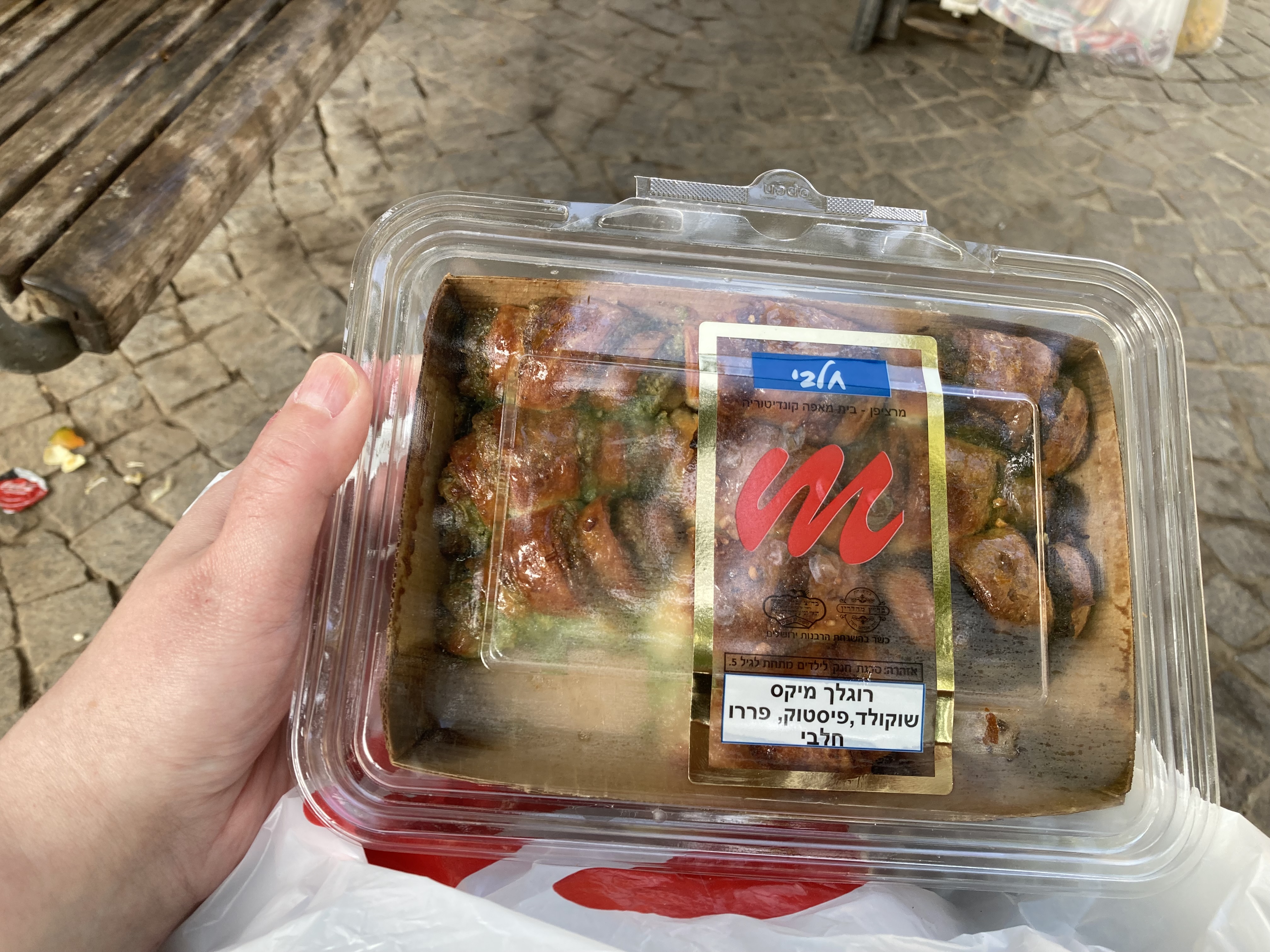 We made sure to pick up more of the fake Krembos, since they still didn’t have the real Strauss brand in stock, and then we got a few other staples: eggs, seltzer, crackers, etc., nothing too big because this shopping trip was mostly for research purposes.