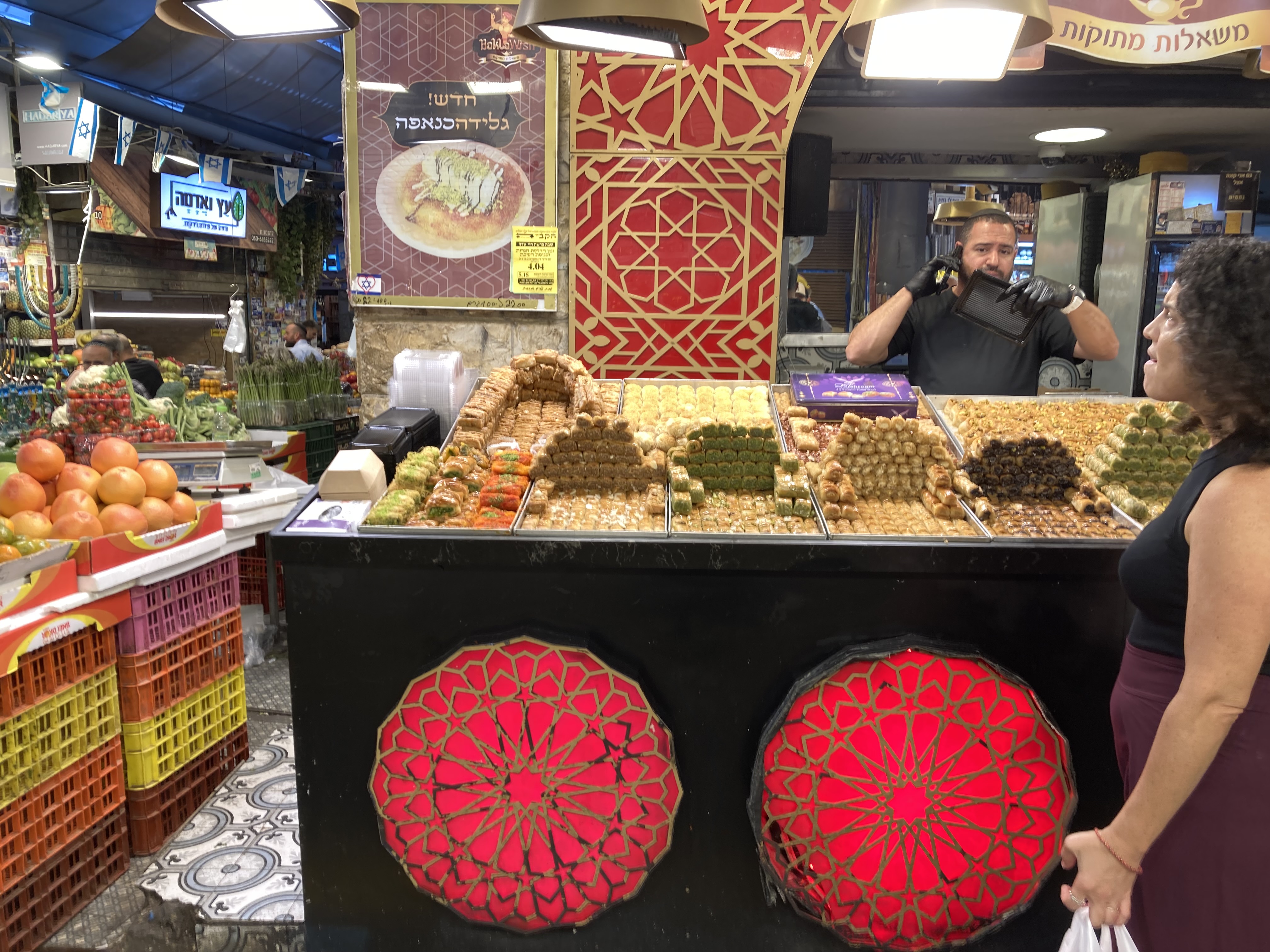 One of the first things I’d mentioned to my friend when we started planning this trip, was that I wanted to go to a real Israeli supermarket at some point, so after we dropped her husband back at their apartment, we headed out to the local supermarket. The main shopping for the week had already been done, so we didn’t go to the big supermarket down the road, but this one reminded me of the little supermarket in my own neighborhood on Long Island, which happens to carry a lot of Israeli products. The only big differences were that the majority of brand names were written in Hebrew, even if the typestyle and packaging was the same as in the United States, and, next to the frozen chicken and turkey and ground beef, there was also a quarter of a goat. I don’t usually see goat at my supermarket, but maybe I haven’t been looking carefully enough.