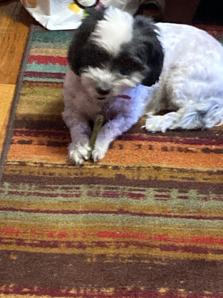 Each day since then, Mom has been looking a little bit better and more like herself, though she still thinks she’s resting too much and getting too little done. And Tzippy seems to be feeling better too. They’ve both happily returned to their regular routine of arguing at bedtime: when Tzippy gets three treats and demands a fourth, and Mom tries to hold her ground, and then sprinkles cheese on the kibble, and Tzippy cries because what she really wanted was another chicken treat and why doesn’t her grandma understand?