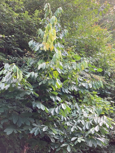 Mom and I ate the first of this year’s pawpaws just before Rosh Hashanah, and the last one to celebrate the end of Yom Kippur ten days later, and in between we shared the rest of the pawpaws with family and friends, with my therapist and rabbi, and possibly with a squirrel or two, because the biggest pawpaw disappeared after the gardeners came one day a few weeks ago; so either they knocked the fruit to the ground and squirrels ran away with it, or one of the gardeners took it home. Either way, I hope whoever found it enjoyed it.