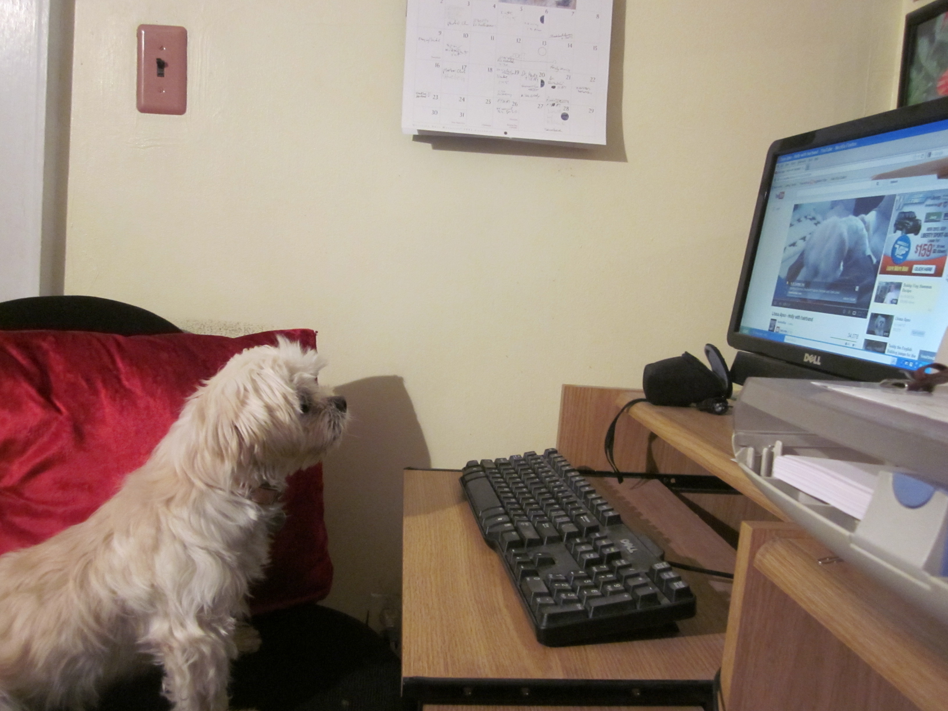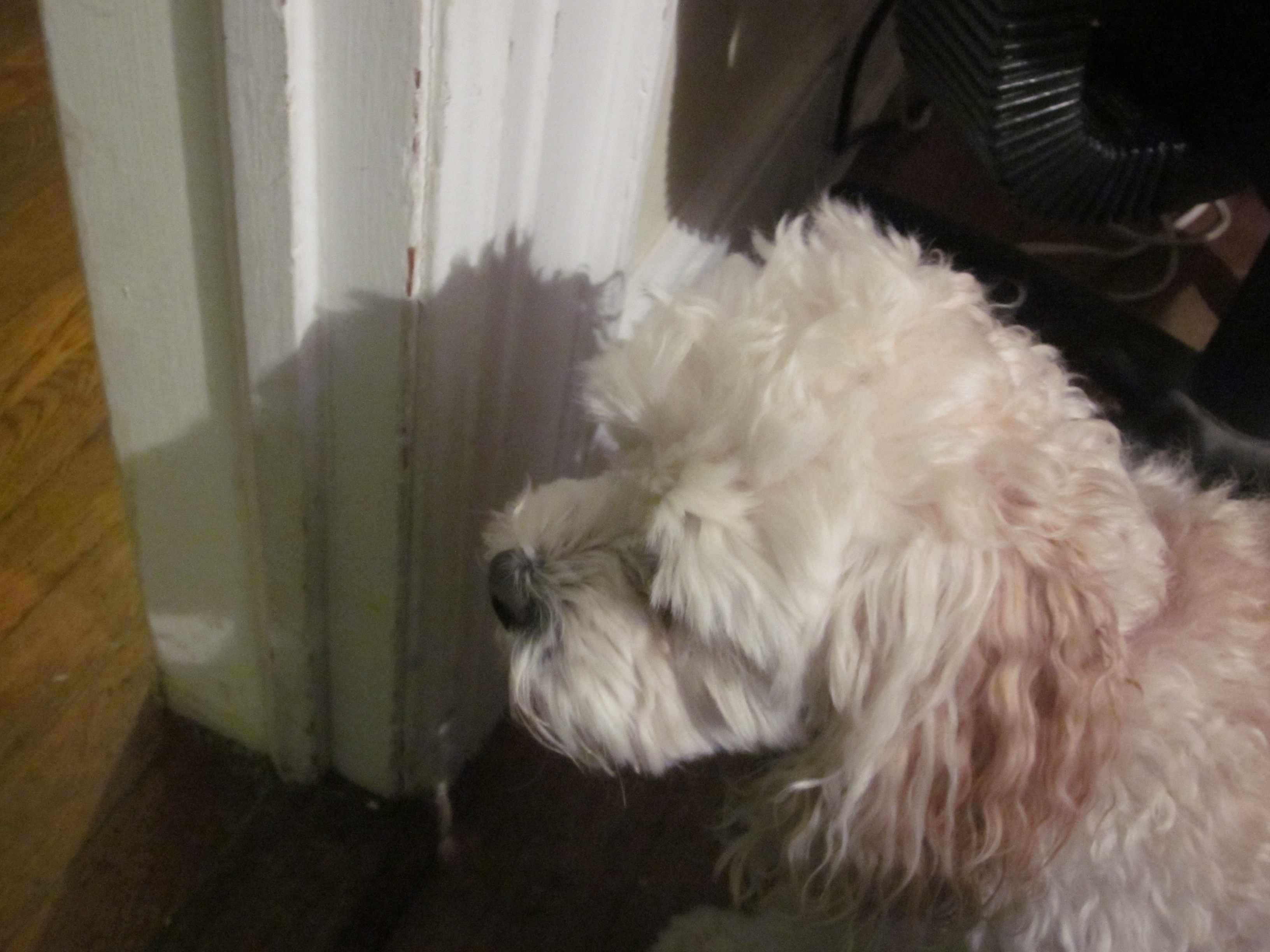 Cricket has changed a lot since she started taking the DES (Diethylstilbestrol – a non-steroidal estrogen medication) last winter. First of all, the incontinence problem disappeared, which was the point of the medication in the first place. She takes her pill – buried in hamburger – every other night, and she hasn’t had an accident in months. But there are other changes too. For some reason, her voice is higher pitched than before. She’s always been loud and barky and anxious about strangers, but now when she screams at them her voice gets even higher. She’s also clingier, if that’s possible. She used to make do with sleeping next to her Grandma, attached like a barnacle, but now she tries to sleep on top of her, like a cat (she’s fourteen pounds, at most, so no bones have been broken in the process). She’s been very attached to Grandma since she was a puppy, but it’s a little more intense now. She even sits on Grandma’s lap at the computer now, instead of just on the couch, where it’s easy.
